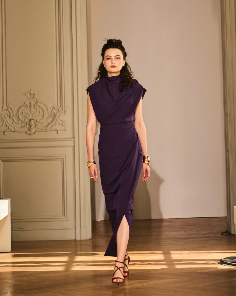 La Koradior transforms the phalaenopsis orchid into an elegant symbol of femininity, where a subtle undercurrent of vitality and the gentle unfurling of petals echo the language of the body, sculpting a statuesque silhouette. The artisan’s needle and thread act as sensitive conduits, capturing the delicate romantic sensibilities of the woman. Draping and pleating are shaped by the contours of her form, carving timeless treasures. The brand’s signature hue, La-purple, draws from the noble lineage of royalty—a sacred, refined, and dignified color. This shade transforms each piece into a projection of the wearer’s identity, extending the multifaceted expressions and life aesthetics of the modern woman, guiding her toward a self-defined sense of value.
